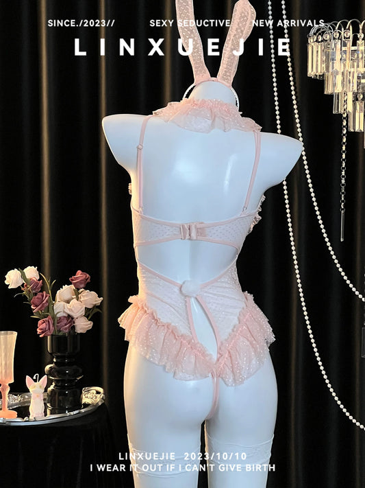 Pink Japanese Kawaii Crotchless Cosplay Anime Bunny Girl Bodysuit