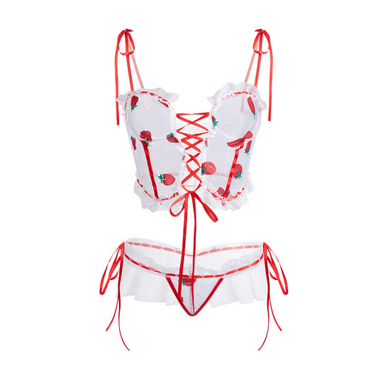 Lace Up Lolita Strawberry Lingerie Set