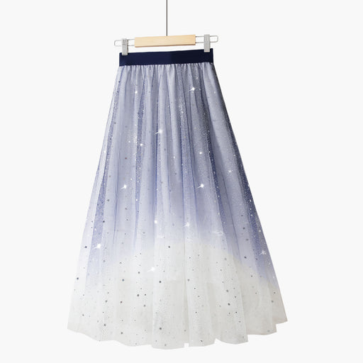 Starring Night Pastel Korean Ruffle Flower Ulzzang Long Skirt