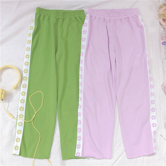 Harajuku Kawaii Line Of Flowers Pastel Pants