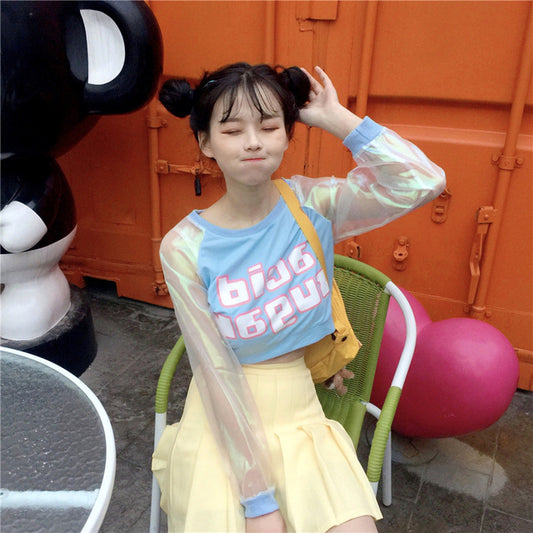 Harajuku Kawaii Patchwork Letter Laser Sleeves Ulzzang Shirt
