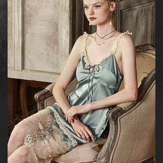 Sofyee Satin Rainforest Floral Hem Emerald Green Slip Nighty Dress