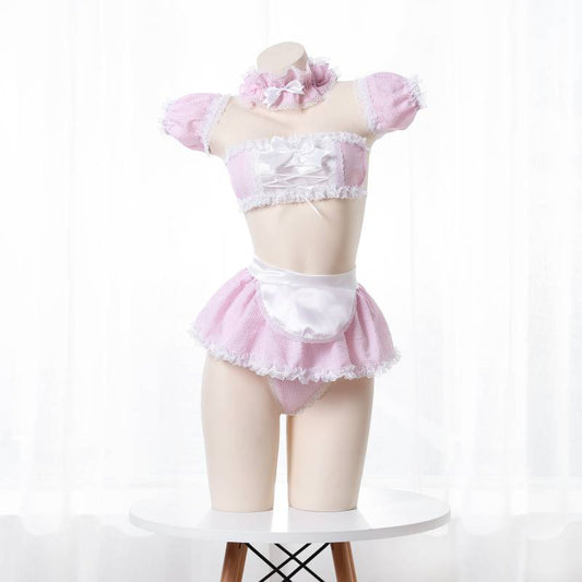 Ruffle Pink Anime Kawaii Japanese Choker Apron Maid Bikini Set