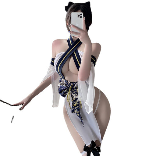 - Gothic Chain Open Cup Girl Lingerie Classic black and white color keep the vintage feeling and the Kawaii bowknot and plush tail show a really lovely you;