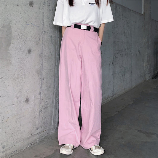 Korean retro high street pink straight leg wide-leg pants casual pants
