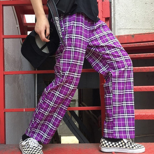 Couple Harajuku Plaid Straight Grid Streetwear Hip Hop Pants