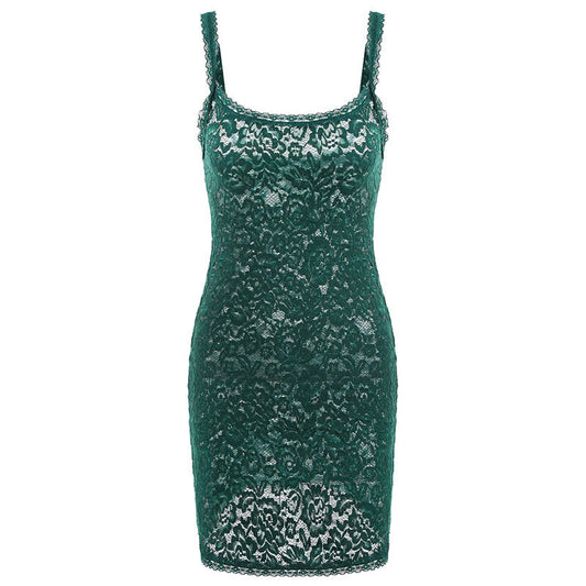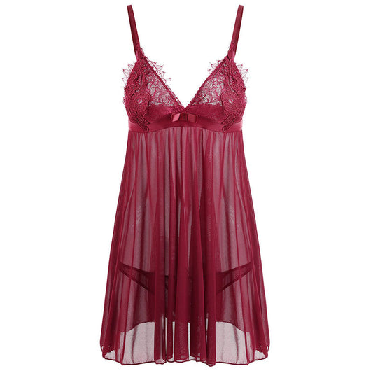 Hearty Flowery Silky Semi See Through Lingerie Dress