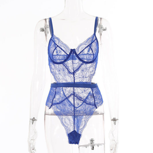 Midnight Plunge See Through All Over Lace Lingerie Set