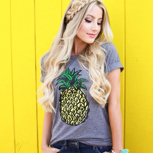 Hello Summer Pineapple Printed O-Neck T-Shirt