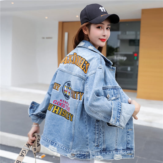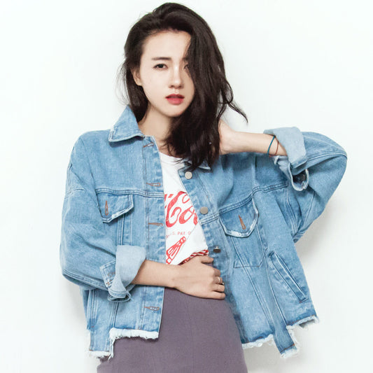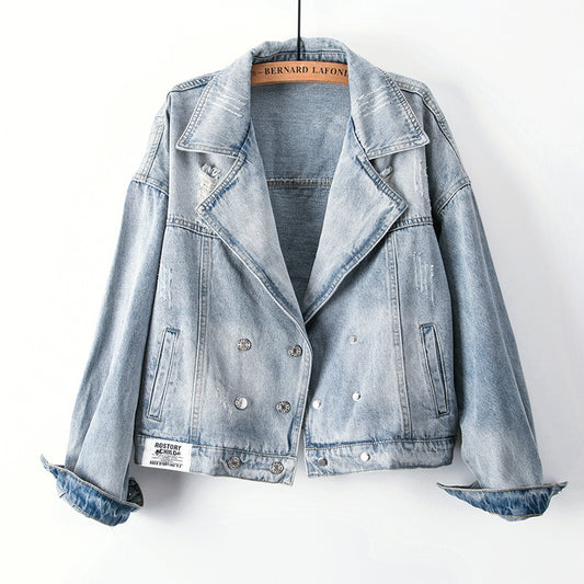 All-Match-Jeansjacke mit diagonaler Tasche, kurzer, lockerer koreanischer Jacke