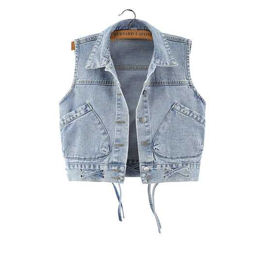 Kurze, ärmellose Jeansweste aus zerrissenem Denim mit schmaler Passform