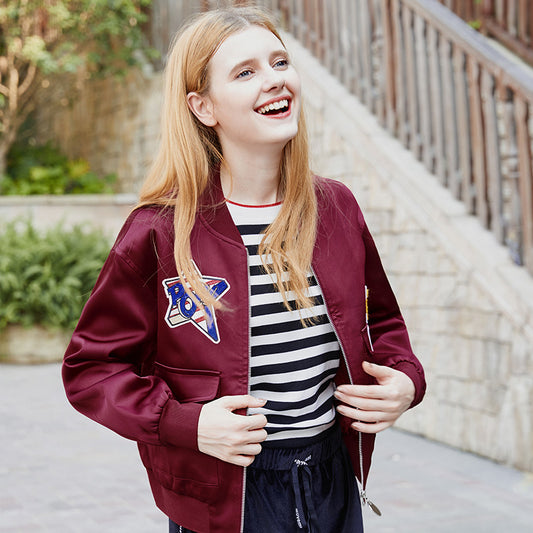 „Lost In The Red Wine“-Baseballjacke mit aufgesticktem Stern