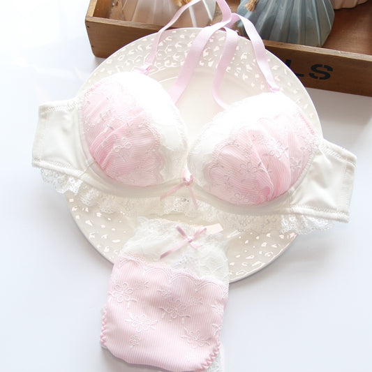 Pastellrosa Rüschen-Spitze-Girly-Dot-Blume-Sweet-Herz-BH-Set