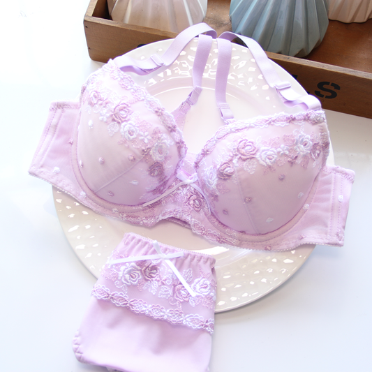 Tumblr Ästhetisches BH-Set mit japanischer Spitze, Girly Dot Flower Sweetie Heart
