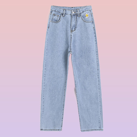 Lockere Daisy-Jeans mit weitem Bein, hoher Taille und schmalem, geradem Bein
