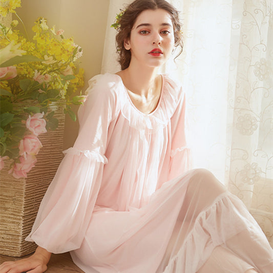 Rüschen-Eleganz-Spitze-süßes Babydoll-Prinzessin-Feeling-Nachthemd-Set