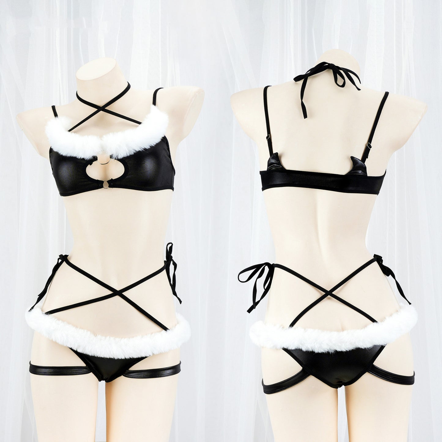 - Naughty Bunny Cat Dessous: Die klassische Schwarz-Weiß-Farbe bewahrt das Vintage-Feeling und die Kawaii-Schleife und der Plüschschwanz zeigen ein wirklich hübsches Aussehen;