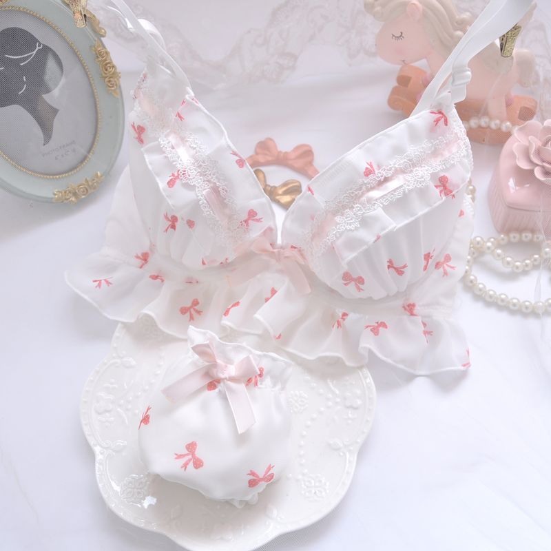 Japanisches süßes BH-Set mit gepunktetem Blumen-Rüschen-Engel