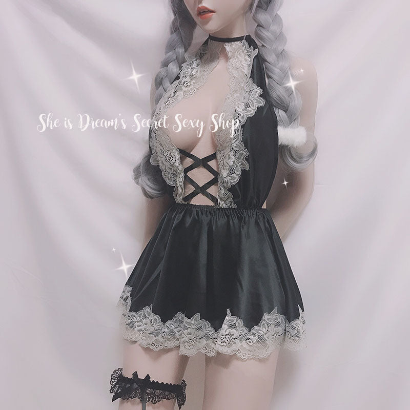 Sexy, durchsichtiges, schwarzes Dessous-Set mit offener Spitze und offenem Körbchen
