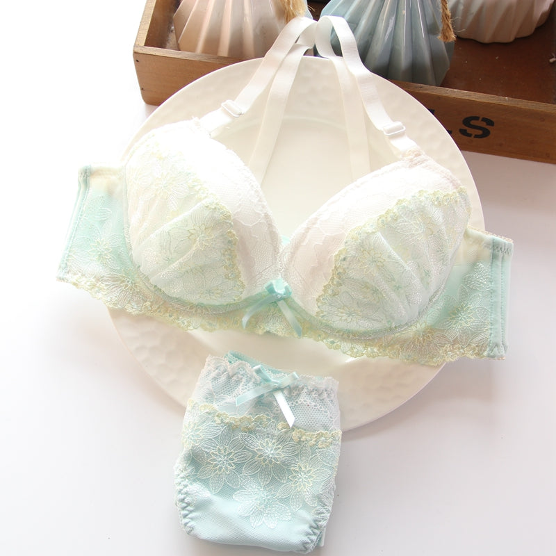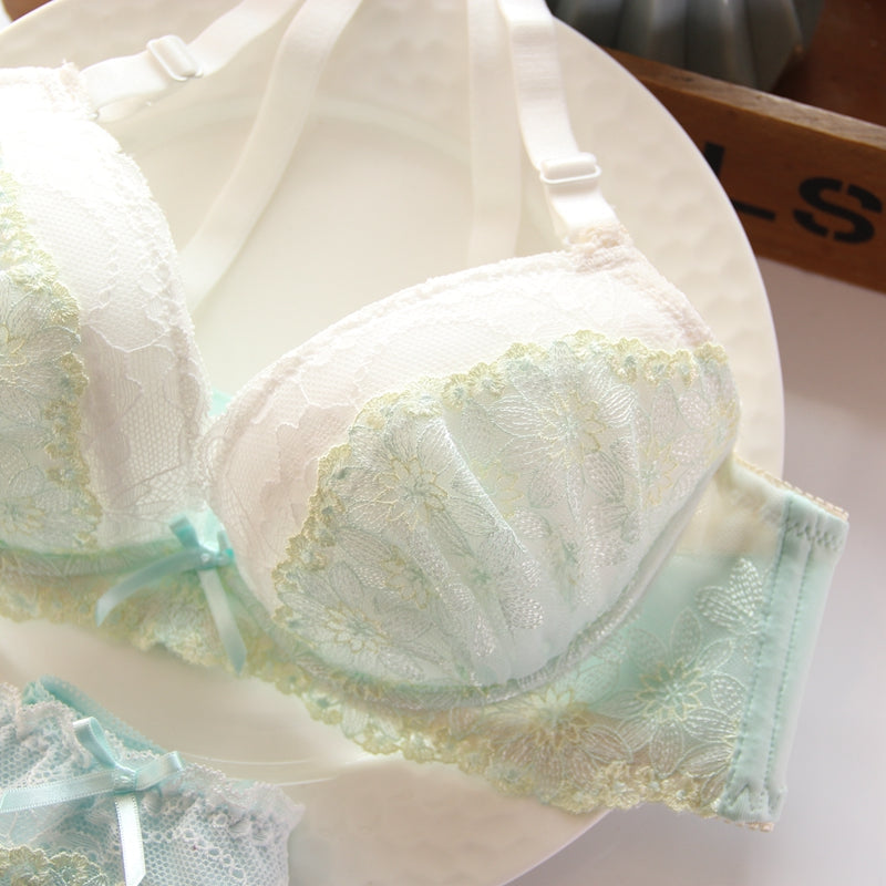Girly Dot Flower Lace Sweetie Heart Wave Trim BH-Set
