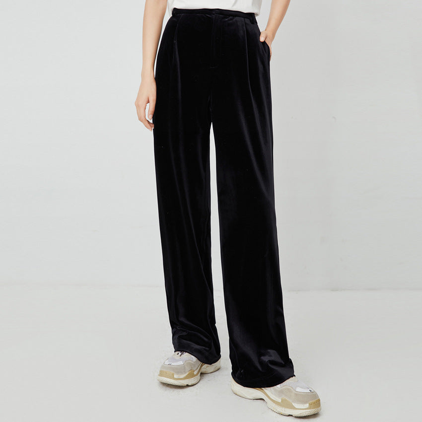 Hose mit hoher Taille und weitem Bein, lockere Samthose mit Wischfunktion