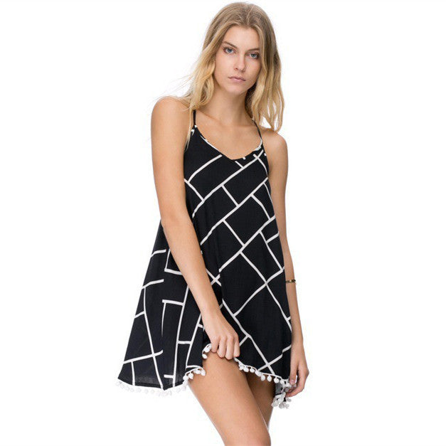 Inspirieren Sie Ihren lässigen Tag mit einem geometrischen Kleid mit Bommelsaum
