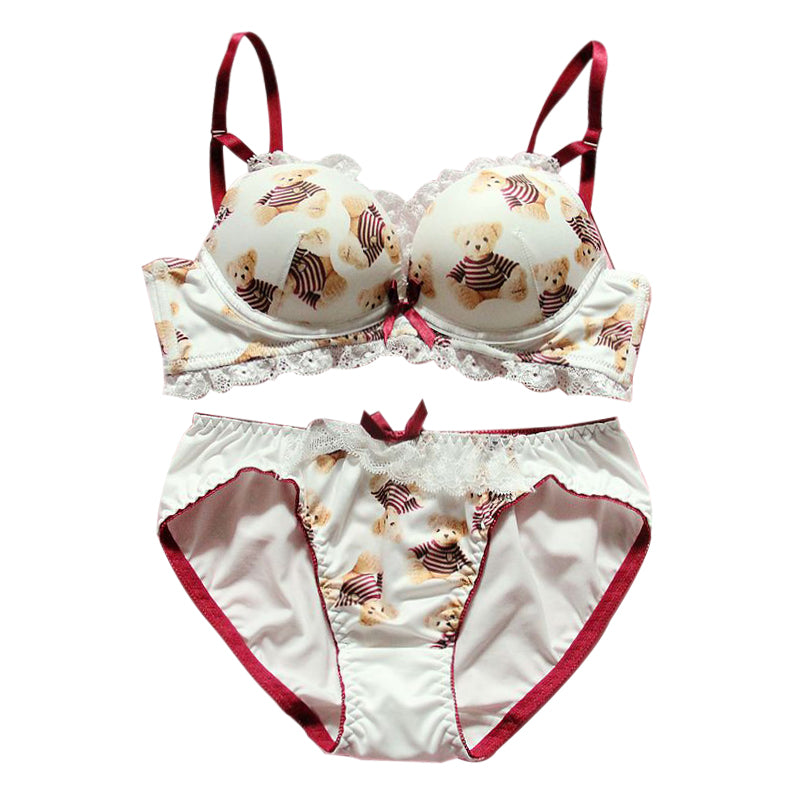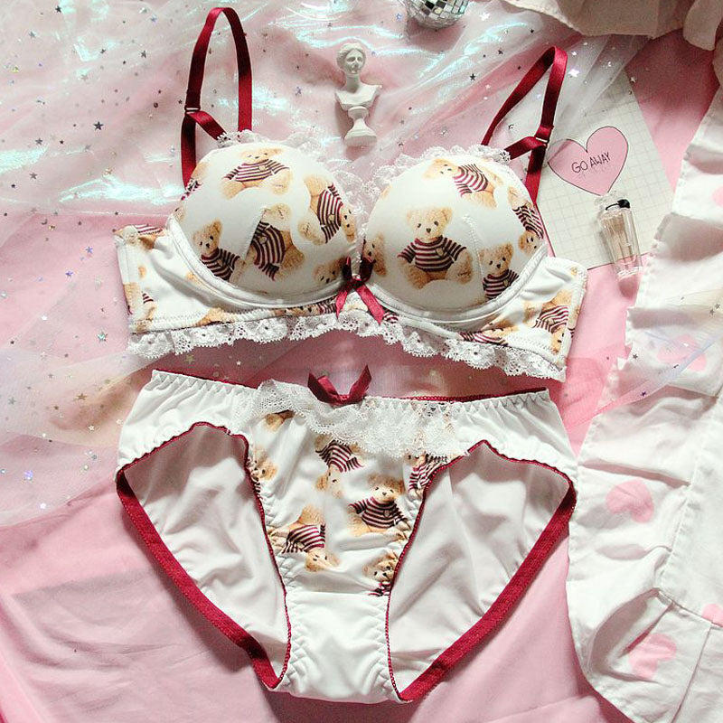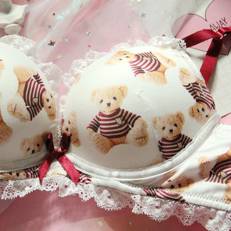 Japanisches süßes weiches Mädchen Loli kleine Brüste sammeln Teddybär-Obermaterial dünnes und dickes Bügel-BH-Set