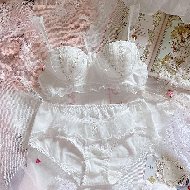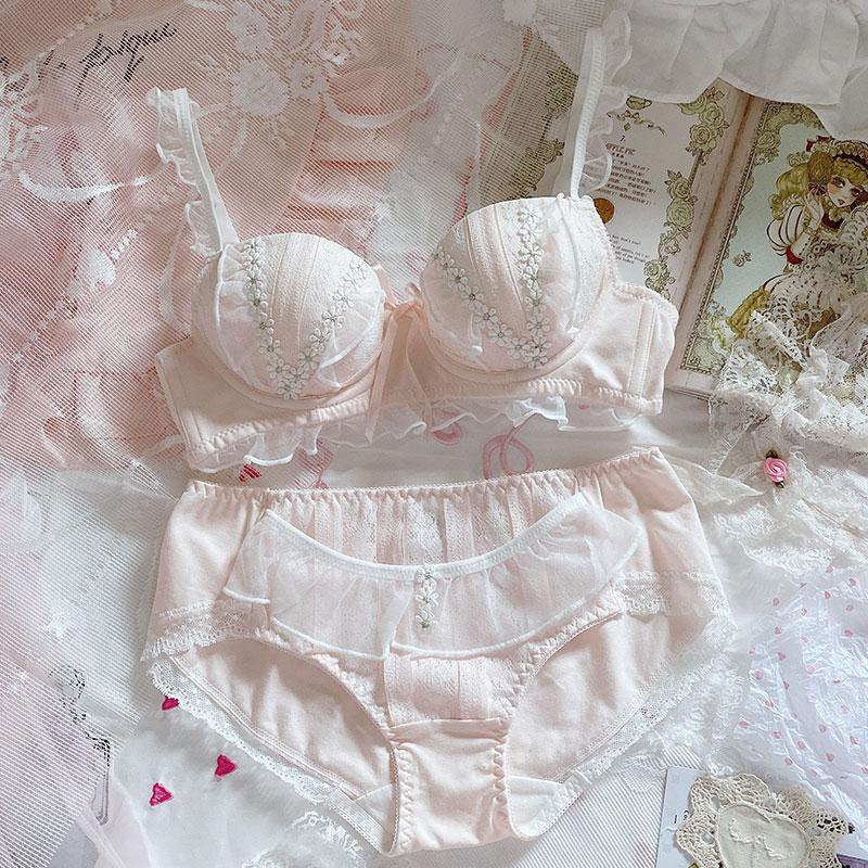 Japanisches süßes, weiches Mädchen-Unterwäscheset mit süßem Lotusblatt und Gänseblümchen ohne Stahlring