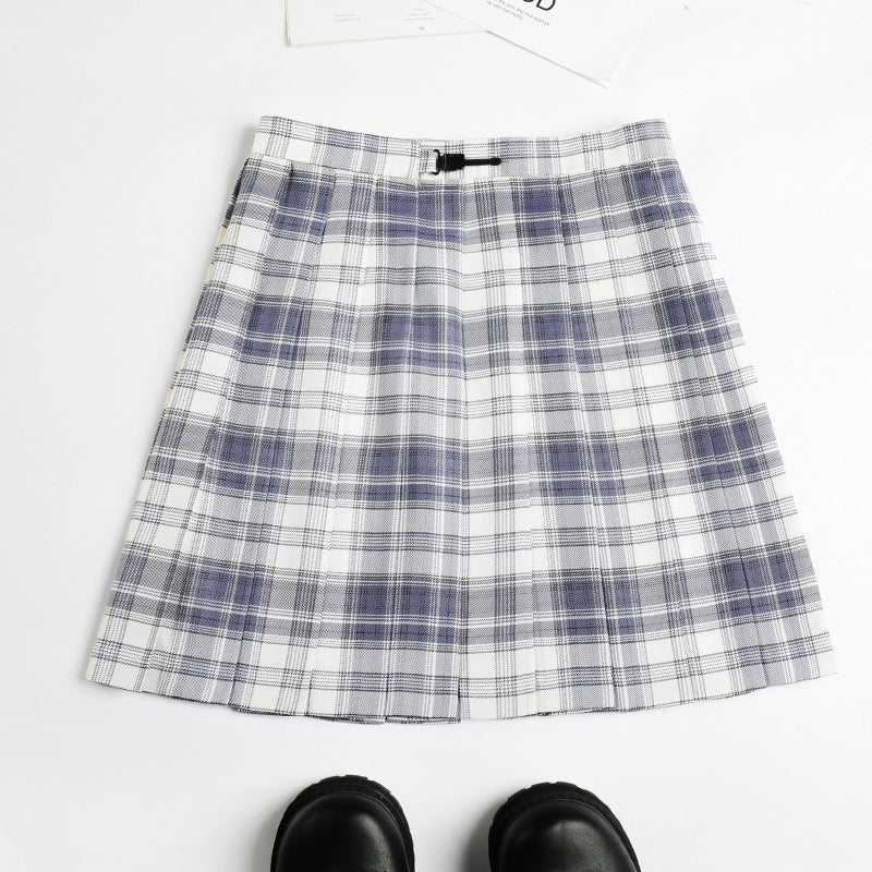 Japanischer, karierter A-Linien-Faltenrock im College-Stil mit hoher Taille