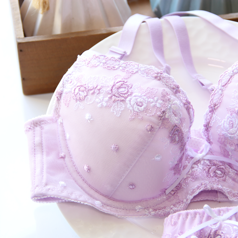 Just Love You Lila Bonbonfarbenes, florales, japanisches, süßes BH- und Höschen-Set