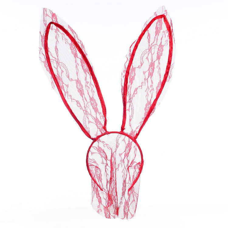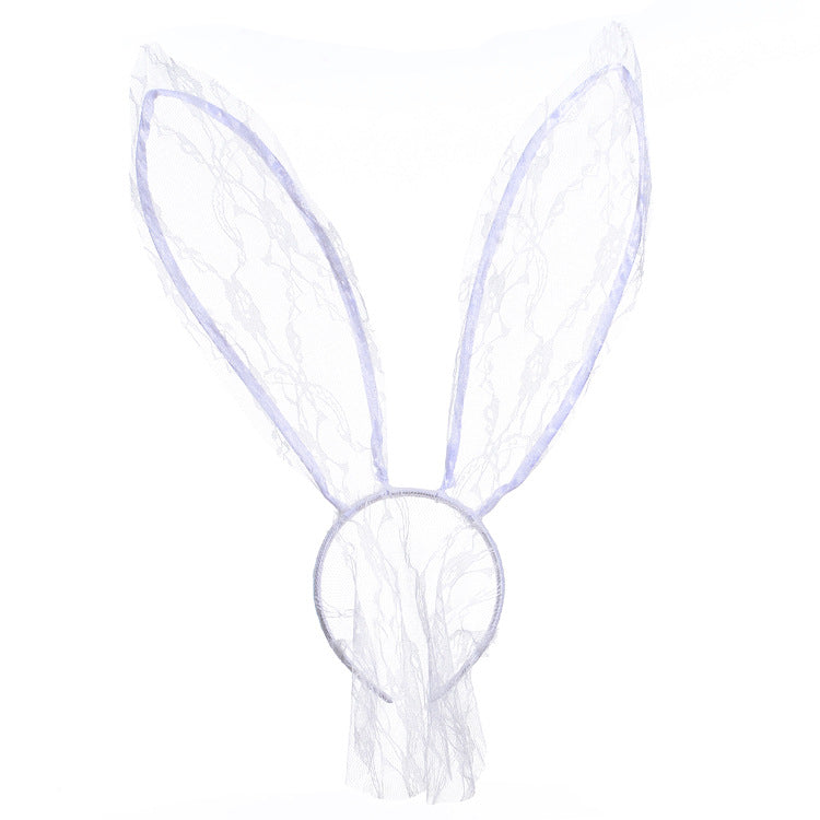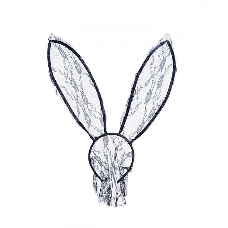 Kawaii Schwarzer Spitzen Kopfschmuck Schleier Hasenohren Stirnband