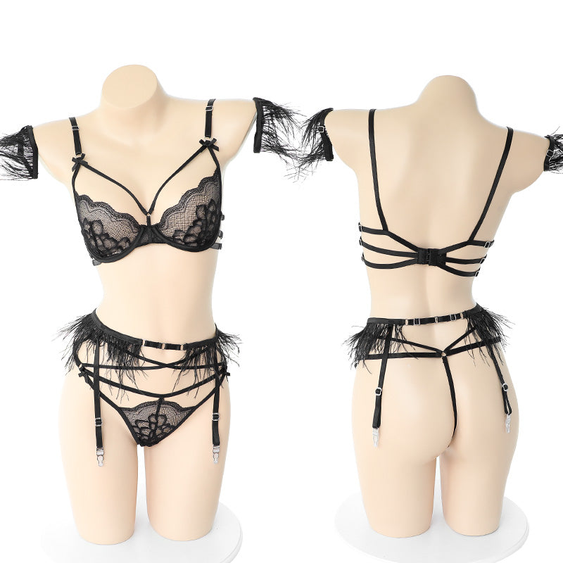 Kawaii japanisches Anime-Dessous-Set mit Federspitze und Stahlrand