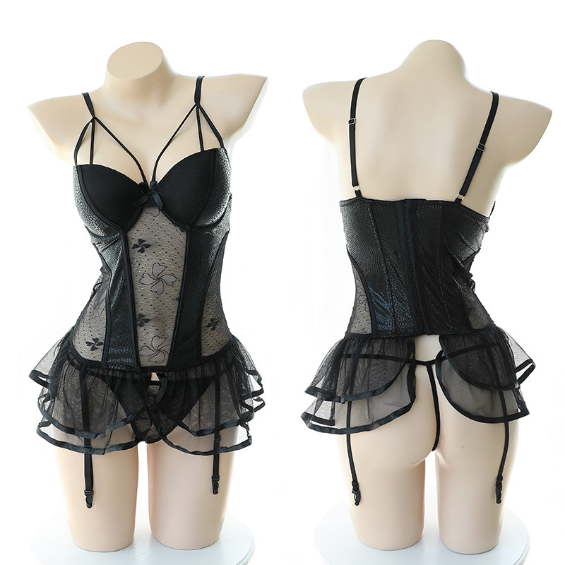Dieses sexy Korsett-Nachthemd in Schwarz ist vom japanischen Kawaii-Stil inspiriert und mit bedeckt um den süßen Stil zu zeigen. Die besten Designs von mit Details sind bei allen Kawaii-Fans beliebt.