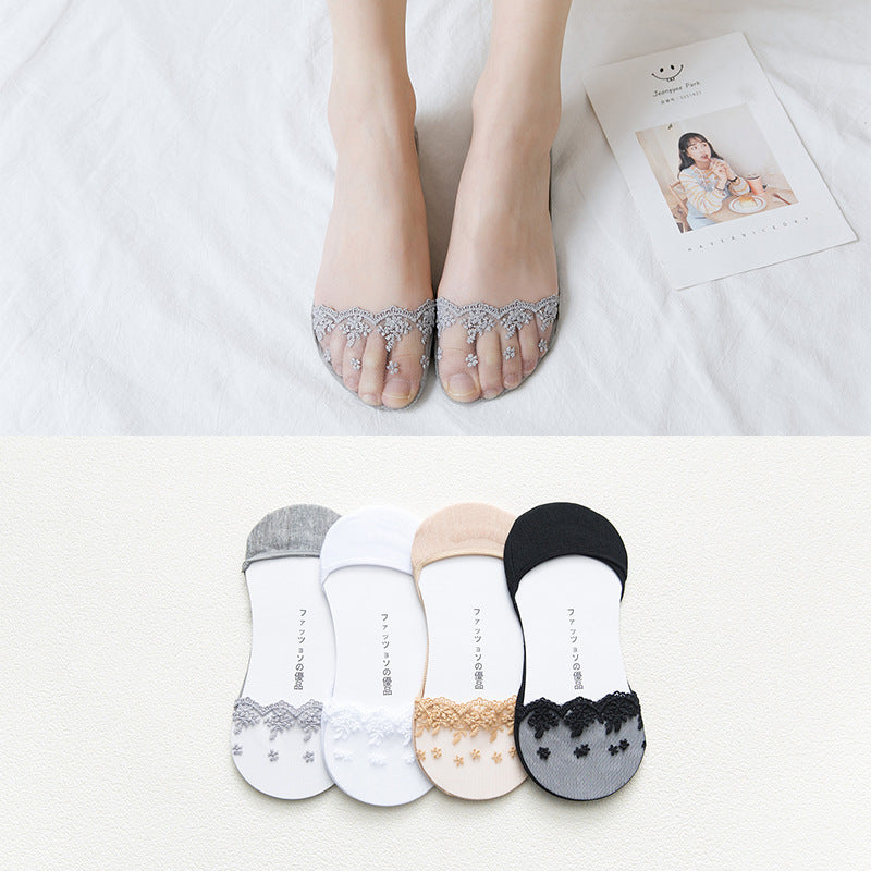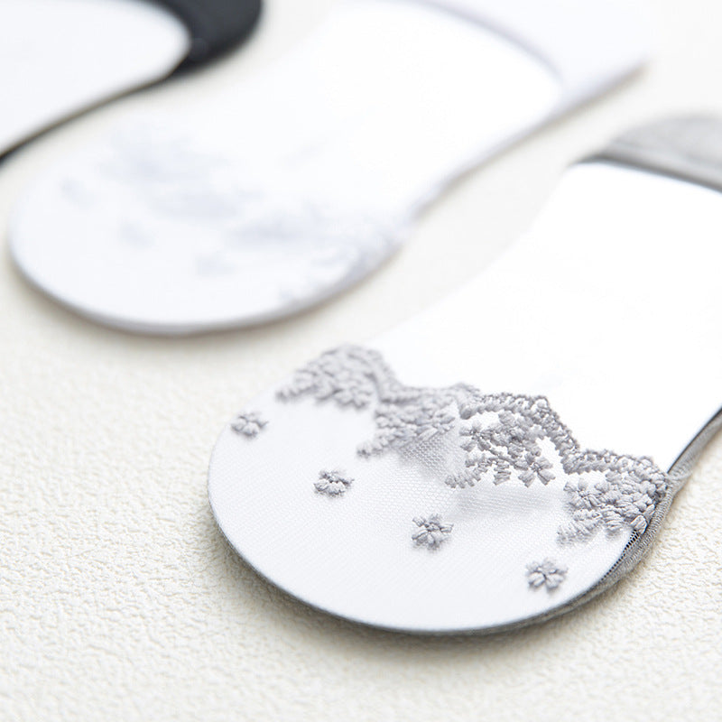 Kawaii japanische Spitzen-Lolita-Blumen-Zehensocken – 5 Paar Set