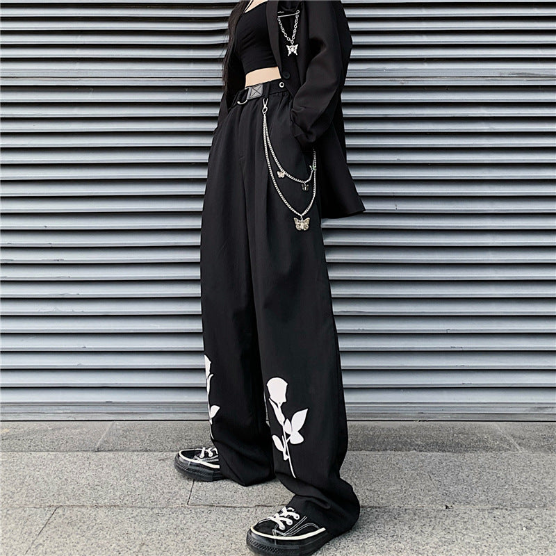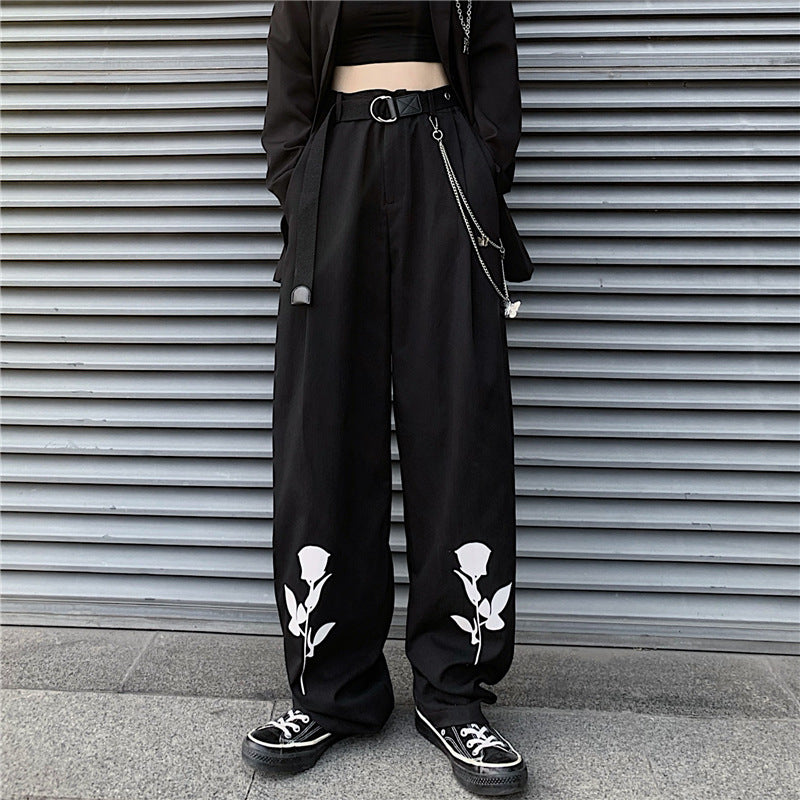 Koreanische Retro-High-Street-Rosa-Freizeithose mit geradem Bein und weitem Bein
