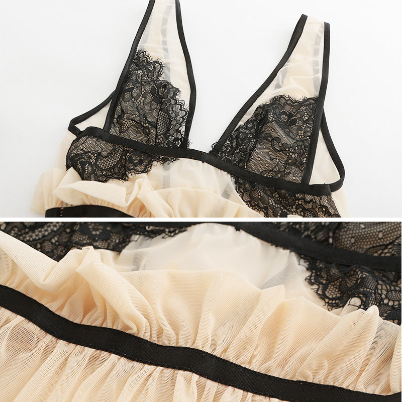 Verführerisches, durchsichtiges Dessous-Set ohne Körbchen