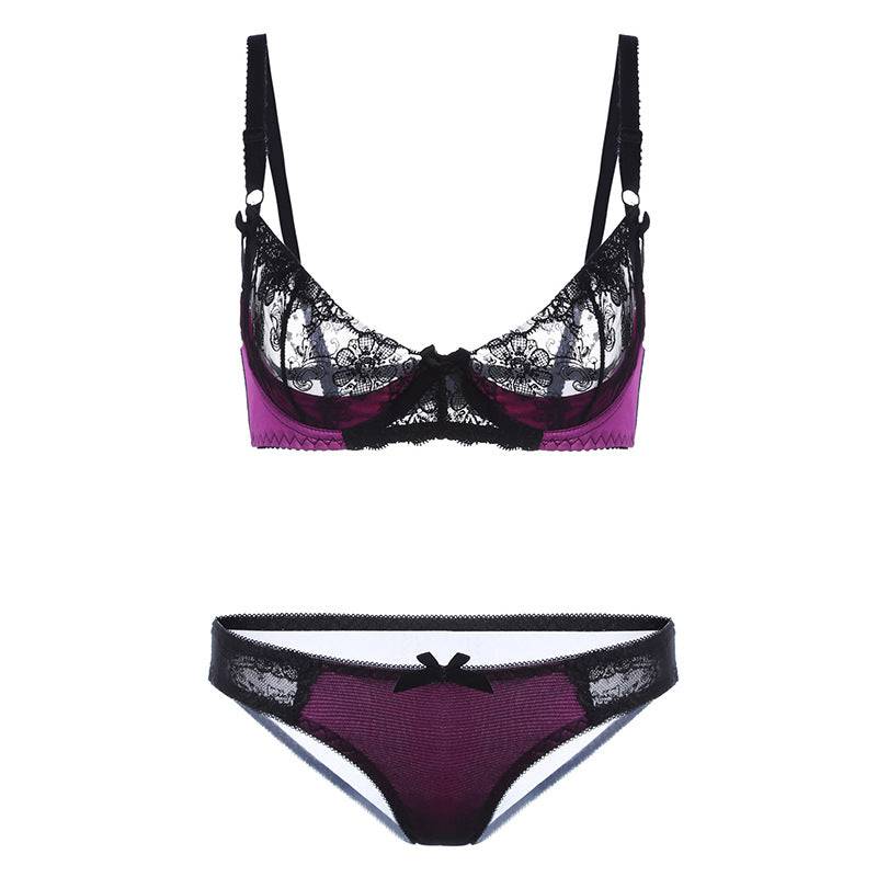 Seductress Violettes durchsichtiges Spitzen-BH-Set