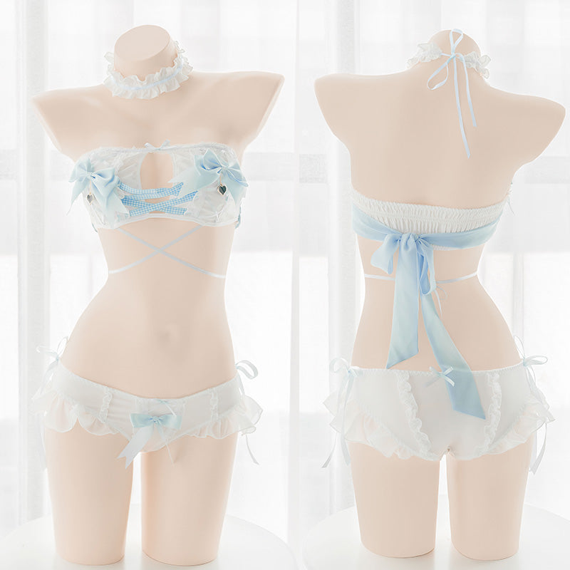 Sexy hohler gebündelter süßer blauer Schleife-Unterwäscheanzug