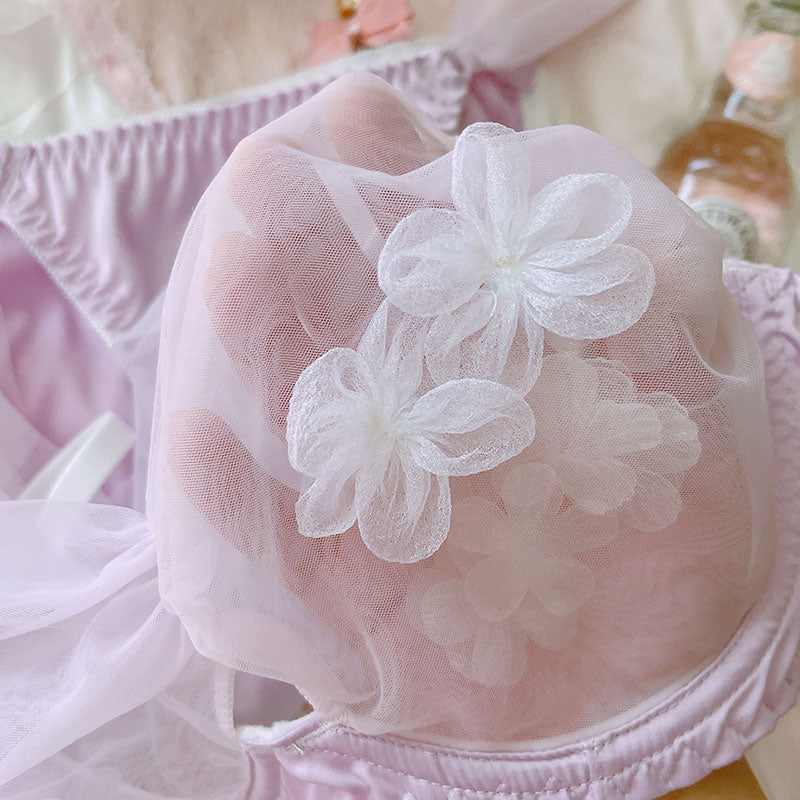 Japanisches süßes Sweetie-BH-Set mit transparenter Schleife