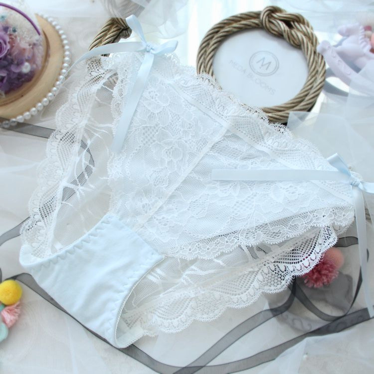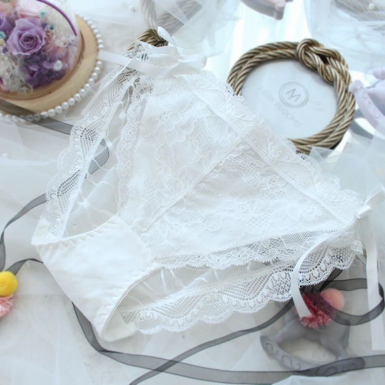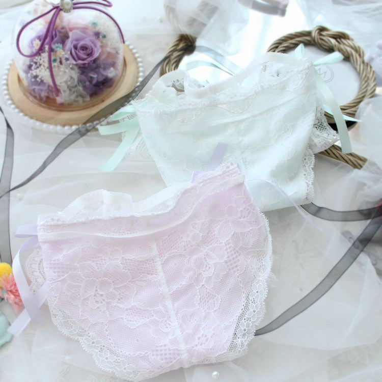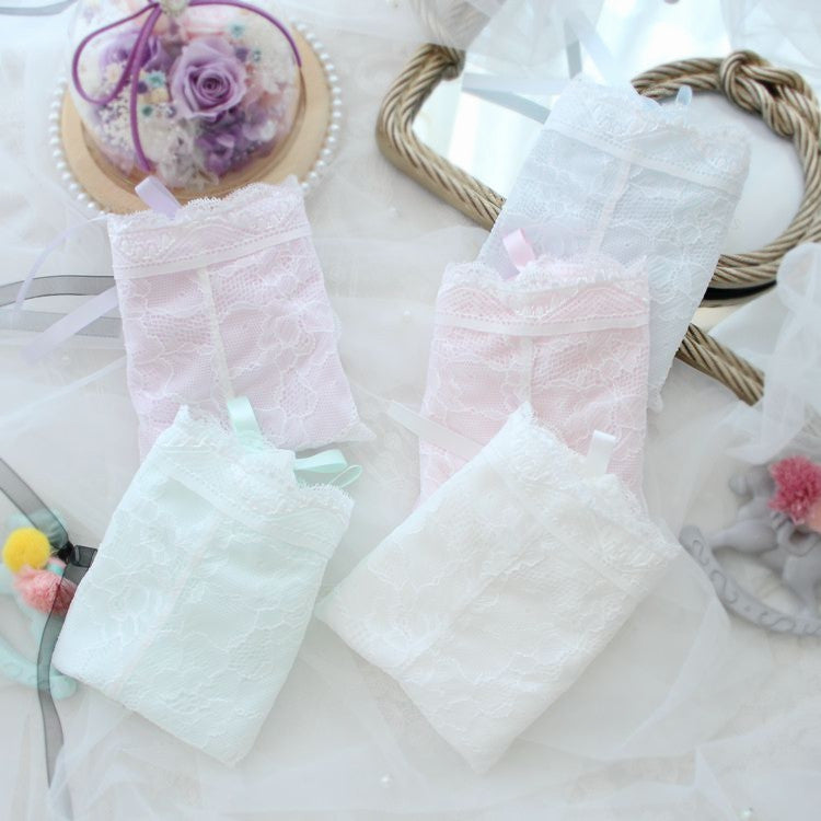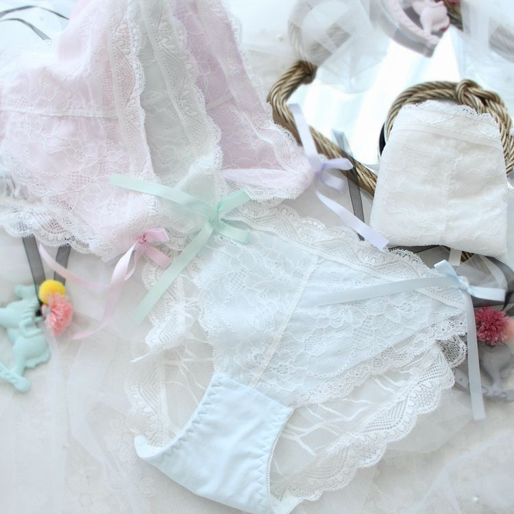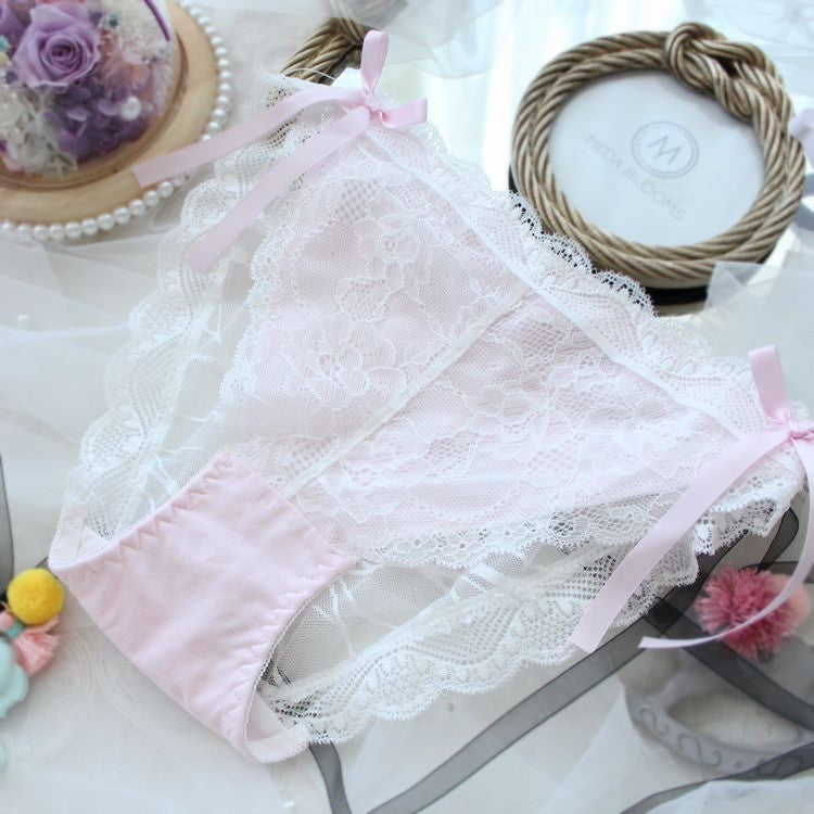 Transparentes, durchsichtiges, bonbonfarbenes Spitzenhöschen mit niedlicher Spitze