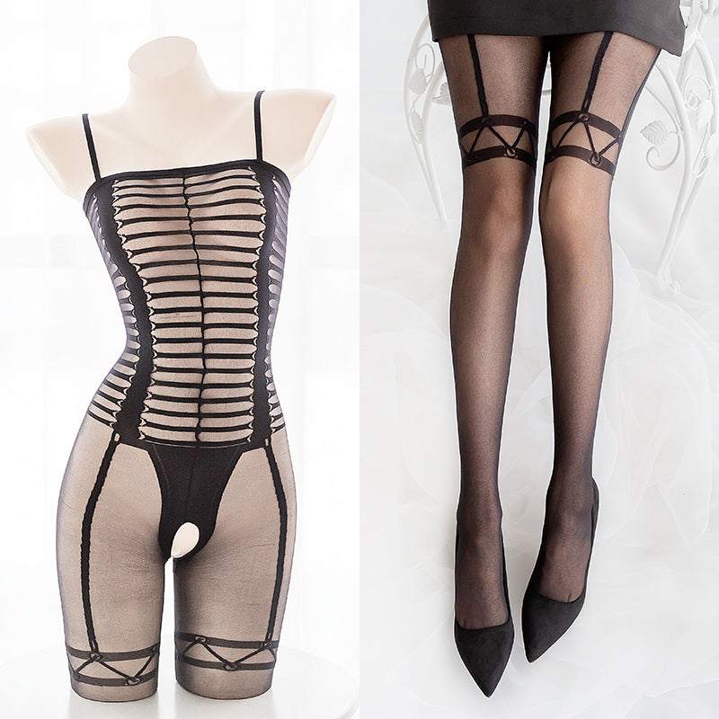 Slash Hole Sexy Mesh Sheer Ganzkörper-Bondage-Fischnetz-Bodystocking