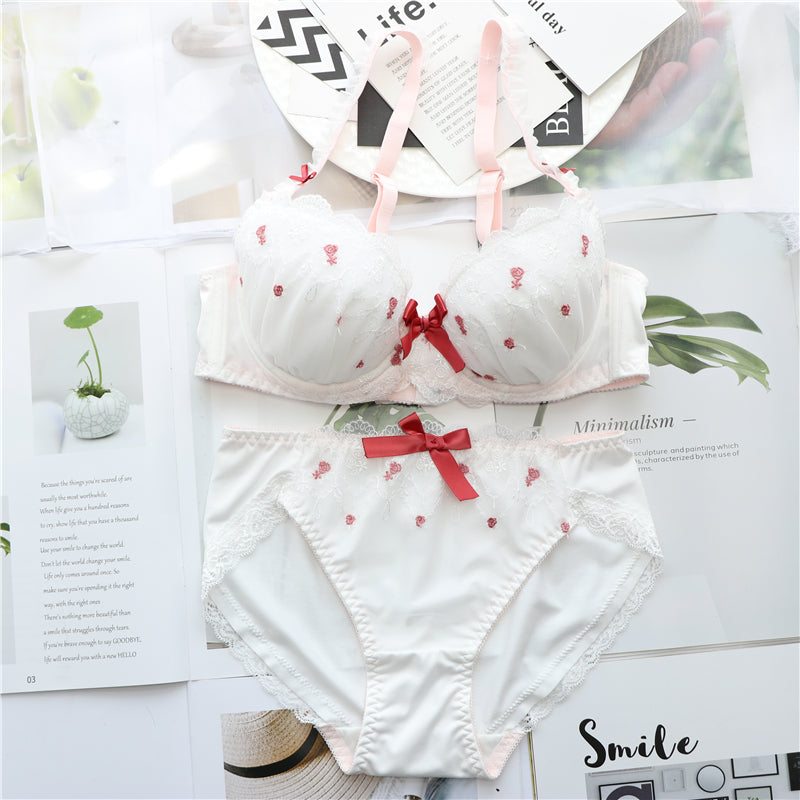 Sofyee Japanisches Unterwäsche-Set mit süßer Spitze und Schleife in Weiß