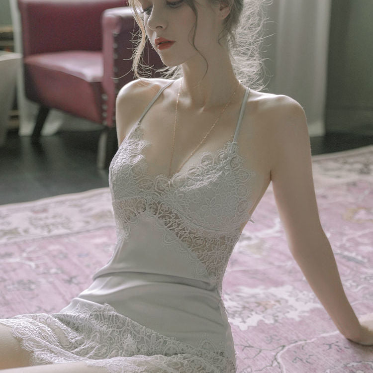 Sofyee Sexy Spitzen-Nachthemd mit transparentem Strapshalter und Neckholder