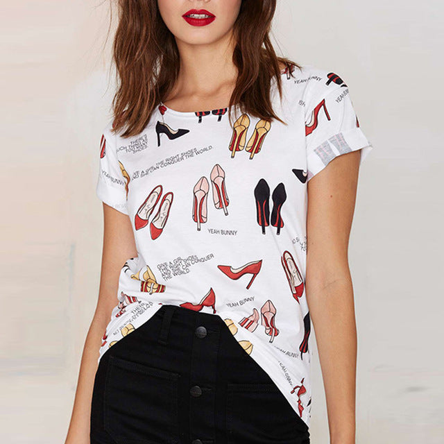 Sommerliches süßes bedrucktes Street-Style-Casual-Basic-T-Shirt