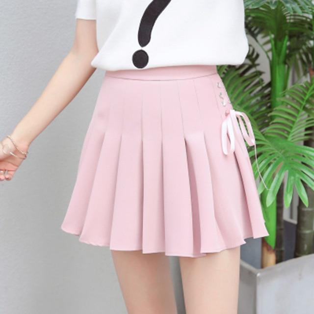 Sommer Neue Mode Feste Denim Plissee Rock Harajuku Spitze-Up Hight Taille Casual Sexy Micro Mini Röcke