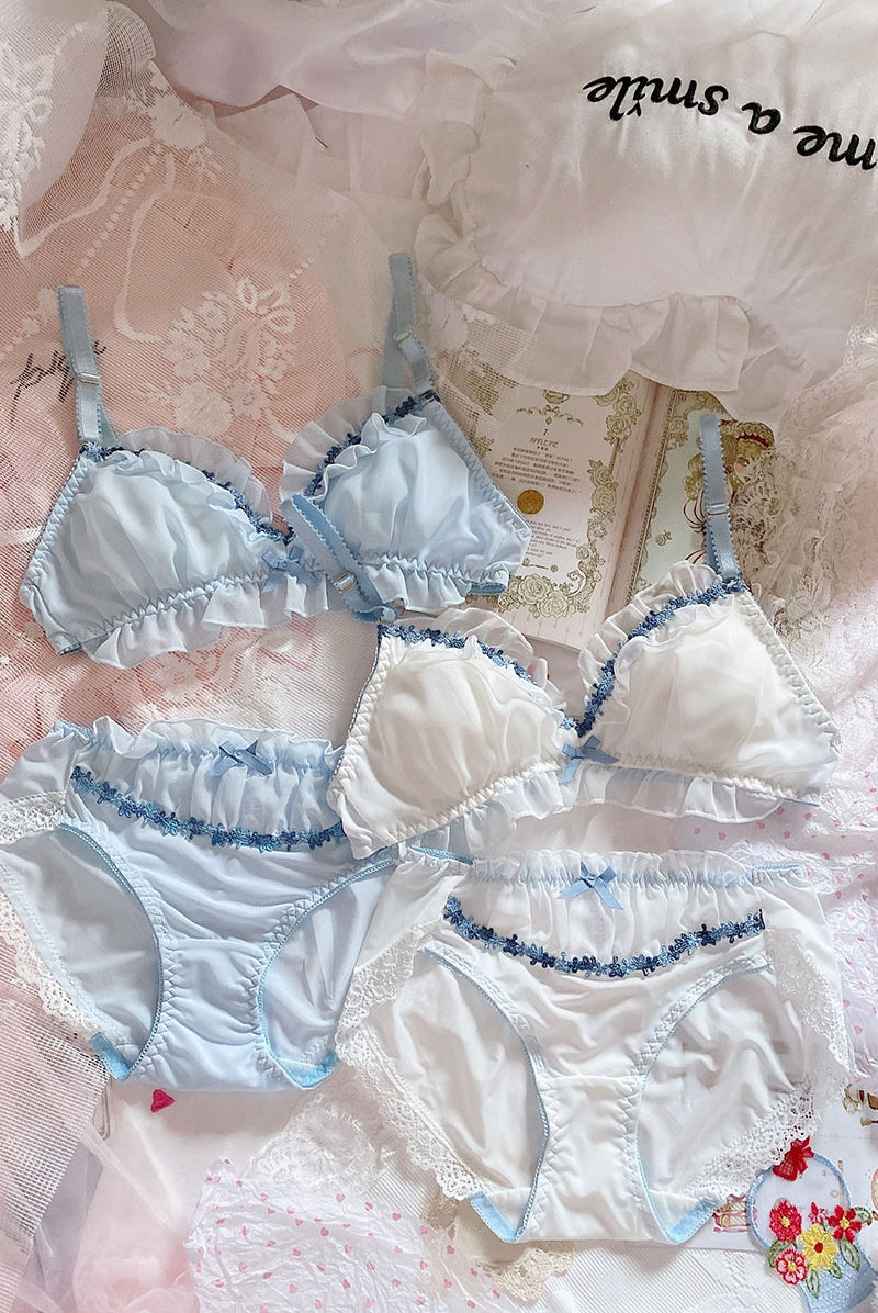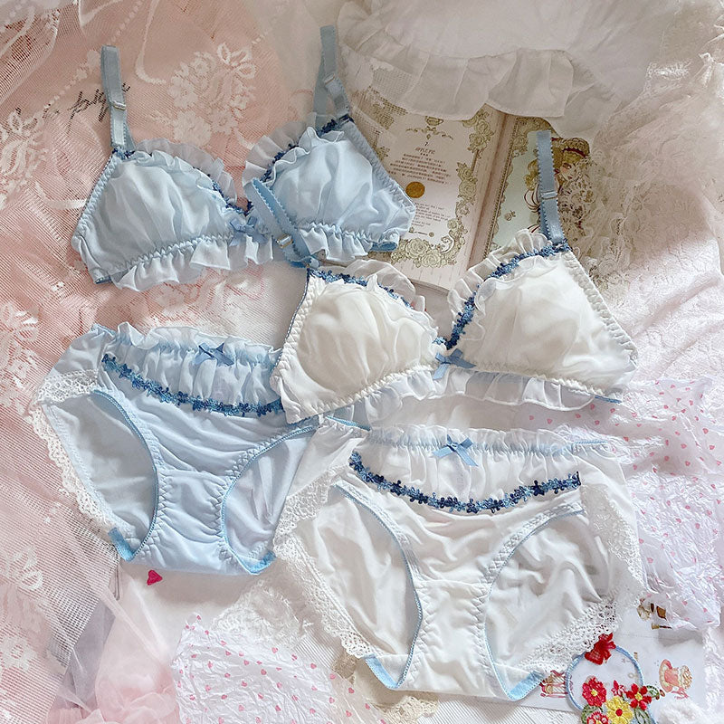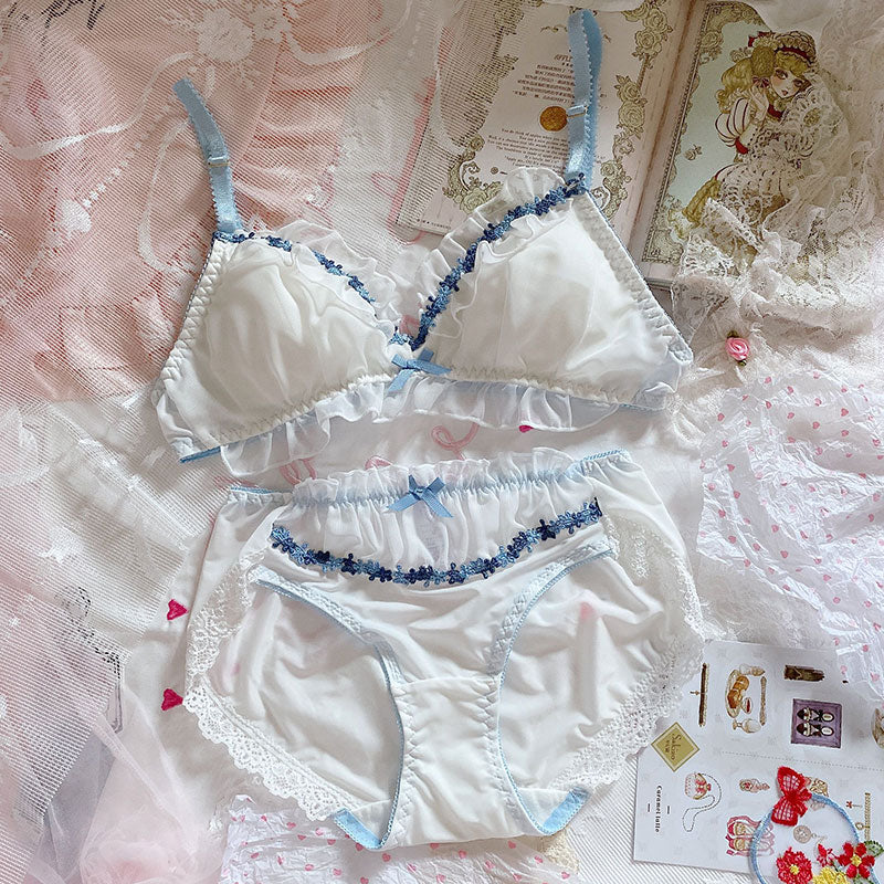 Leichtes, stahlloses Triangel-BH-Set mit süßem Blütenblattband aus Spitze