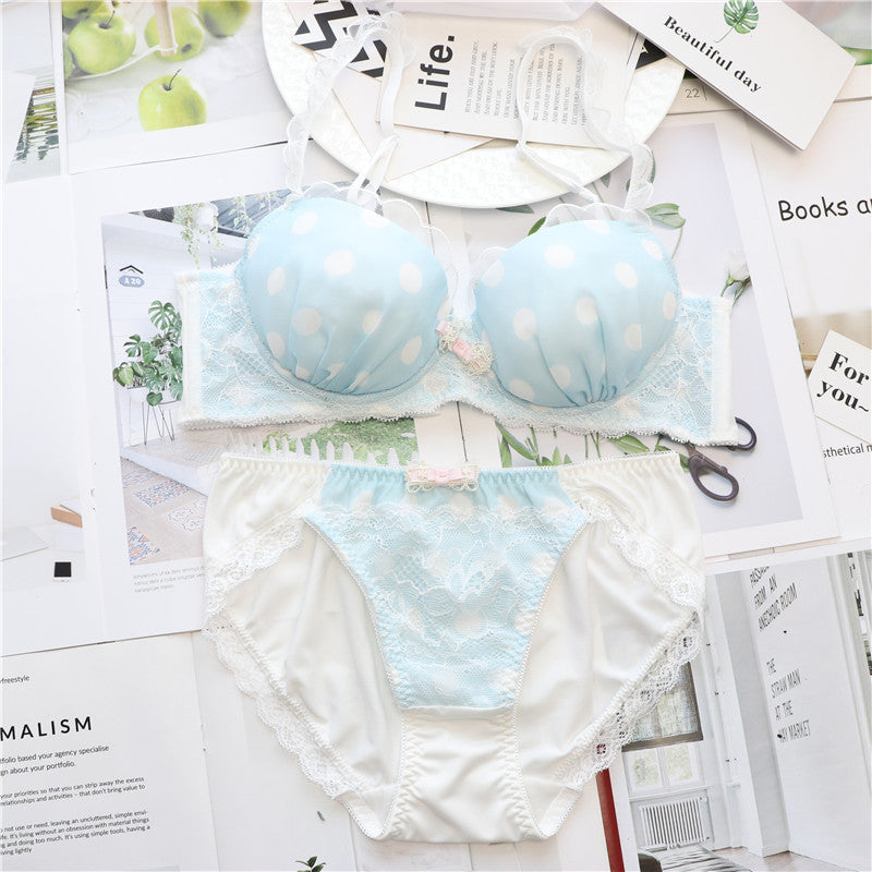 Sofyee Blue Dot Kawaii Sweetie Heart Bra Set