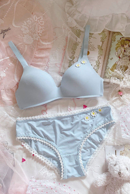 Kawaii Dot Flower Embroidery Romance Wave Lace Spring Flower Bra Set