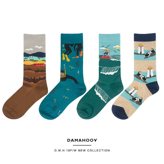 Landscape Cartoon Peachy Kawaii Japanese Pastel Graphic Socks