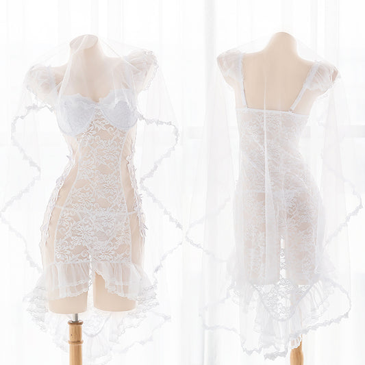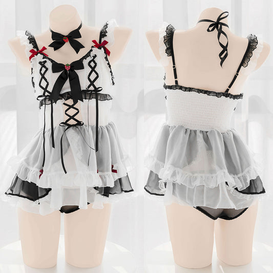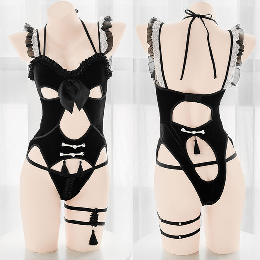 Hollow sexy cheongsam halter dress sexy lingerie set